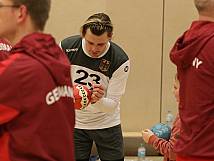 So konnten die Deafboys zumindest die erste Spielhälfte durchaus ausgeglichen gestalten. Dabei wagte das Trainerteam die Umstellung an der Spitze der Fünf-Eins-Abwehrformation, wo Dominik Götz sich als Alternative zu Lukas Kaut anbot. Trotzdem war der 28-Jährige nicht ganz zufrieden. „Da sind wir noch nicht so richtig eingespielt, da fehlt noch die Abstimmung und die Harmonie, aber ich bin zuversichtlich, dass wir beim nächsten Lehrgang, wo der Schwerpunkt auf die Abwehr liegt, das schaffen werden“, meinte Götz, der auf dem linken Flügel als treffsicherer Torschütze gilt.
